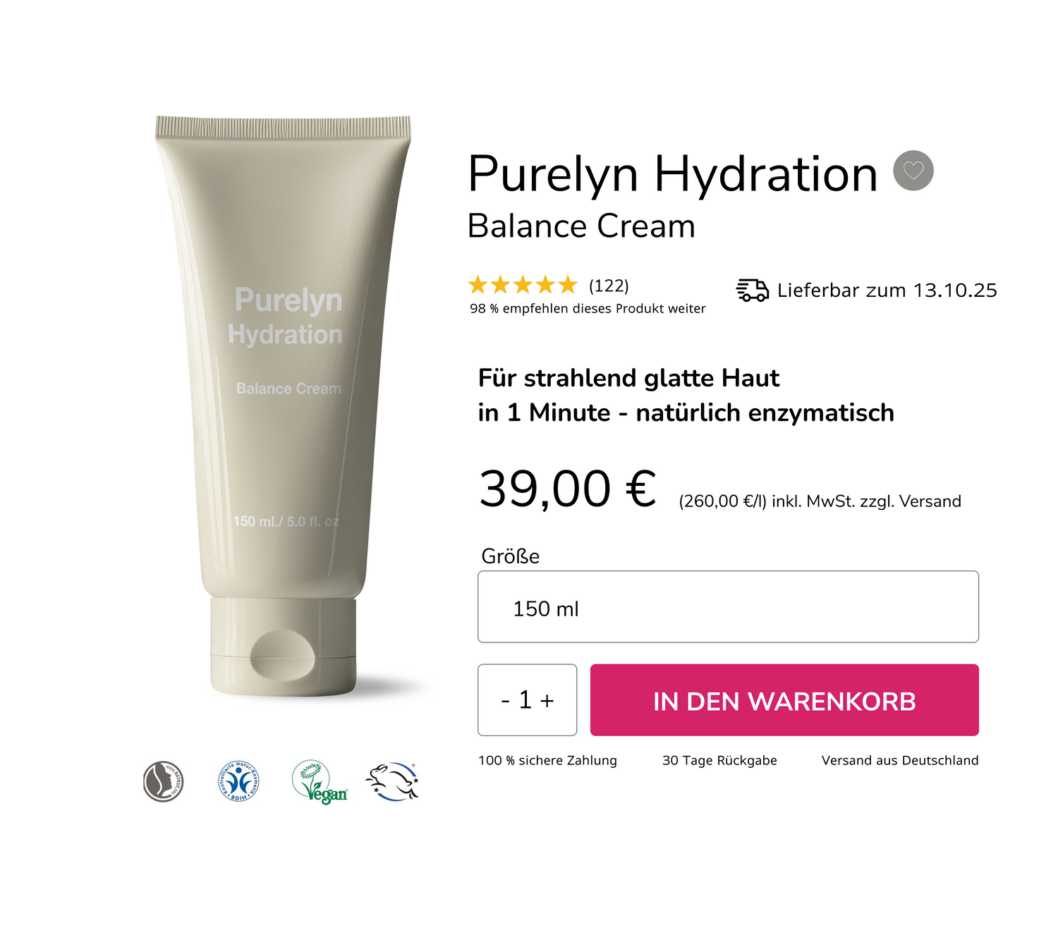 Der Effekt („strahlende Haut in 1 Minute“) spricht direkt das Ziel an → mehr Motivation, das Produkt auszuprobieren.